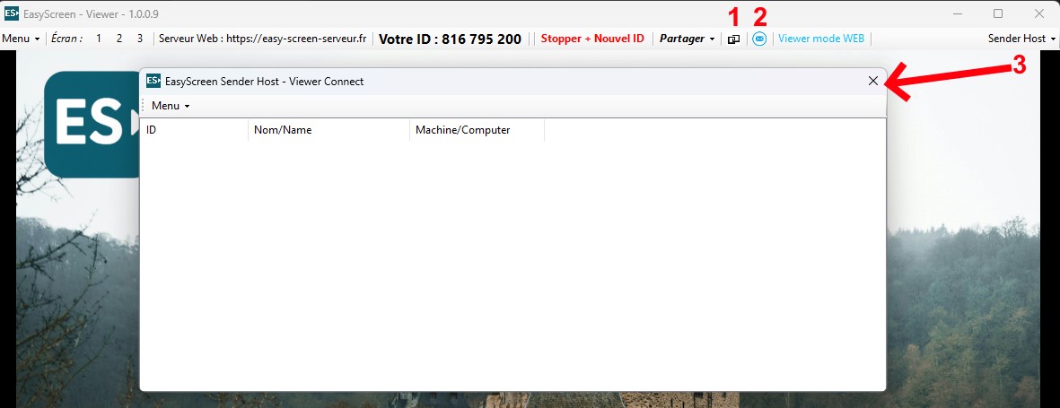 1 = Lancer plusieurs Viewers sur votre même ordinateur pour contrôler à distance plusieurs Senders à la fois, jusqu'à en moyenne 4 à 5 connexions simultanées